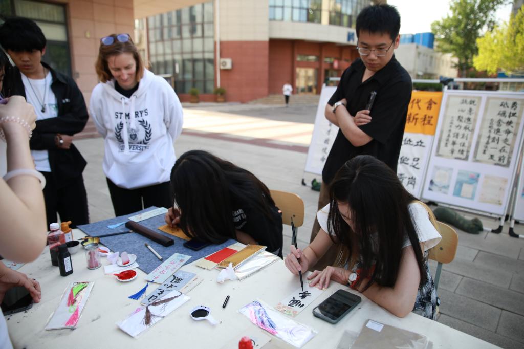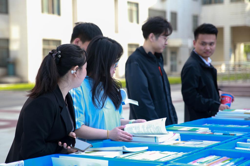 儀式上,舞獅表演、古典樂器合奏、漢服展示等傳統(tǒng)文化項(xiàng)目,吸引了中外合作辦學(xué)學(xué)生的廣泛參與,特別是外籍教師和國際留學(xué)生,沉浸式感受中華優(yōu)秀傳統(tǒng)文化魅力。人工智能主題書展和心理健康專題書展,吸引了讀書愛好者的現(xiàn)場翻閱瀏覽,成為書香校園的一道亮麗風(fēng)景。