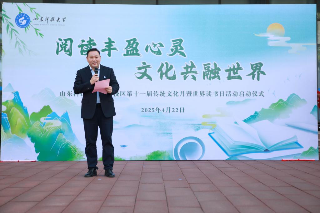 為進(jìn)一步弘揚(yáng)中華優(yōu)秀傳統(tǒng)文化,增強(qiáng)青年學(xué)生文化自信,濃厚校園文化氛圍,4月22日,由濟(jì)南校區(qū)學(xué)團(tuán)工作部和教務(wù)部共同舉辦的第十一屆傳統(tǒng)文化月暨世界讀書日系列活動順利啟動。天橋區(qū)團(tuán)委書記范文亮應(yīng)邀出席活動。濟(jì)南校區(qū)管委常務(wù)副主任郭加書,黨委副書記兼學(xué)團(tuán)工作部主任、學(xué)生黨總支書記毛慶東,管委副主任兼教務(wù)部主任劉國棟,相關(guān)部門負(fù)責(zé)人、師生代表參加了活動。