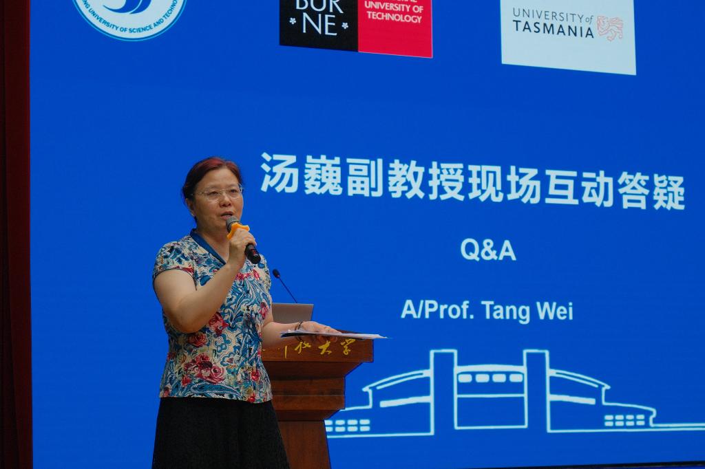 在專業介紹環節,斯威本學院副院長范明芳、電氣信息系副主任朱其剛、金融學專業湯巍副教授就考生和家長關心的問題進行現場互動答疑。在項目咨詢展區,各項目負責人、專業教師、優秀學生代表耐心細致地解答了考生及家長提出的關于招生政策、錄取要求、學費標準、外語能力準備、海外學習銜接、校園生活等咨詢。