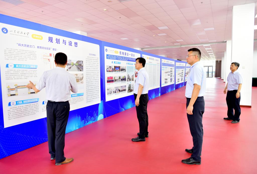 會后,徐龍飛深入學生事務管理服務辦公室、教務管理服務辦公室、老舊小區改造項目現場、改造后的圖書館會議室、學校和校區辦學成果展、智能機器人科教融合創新中心、操場等處實地調研。