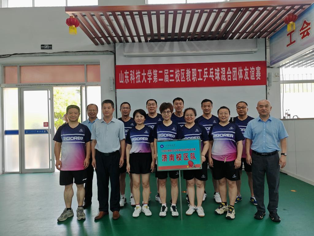 7月5日,山東科技大學第二屆三校區教職工乒乓球混合團體友誼賽在泰安校區舉行,濟南校區乒乓球代表隊由郭加書主任帶隊參賽,經過激烈角逐,校區代表隊榮獲季軍。