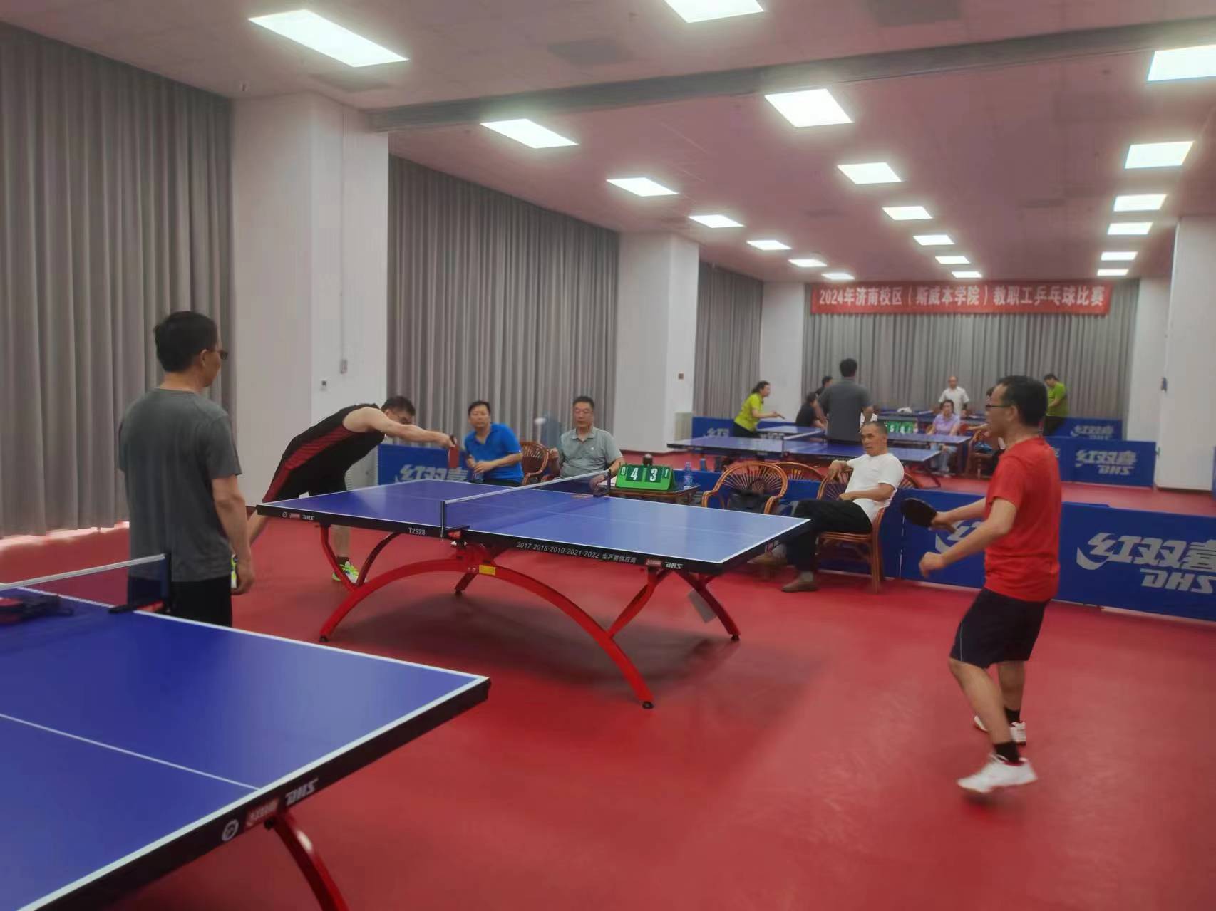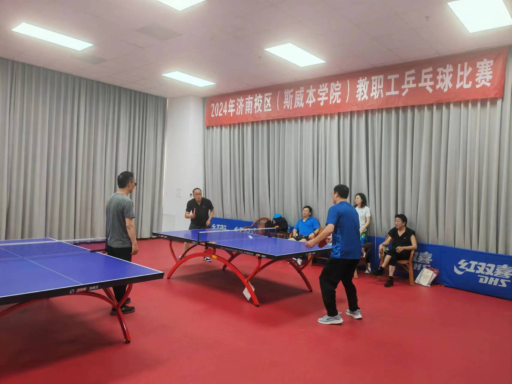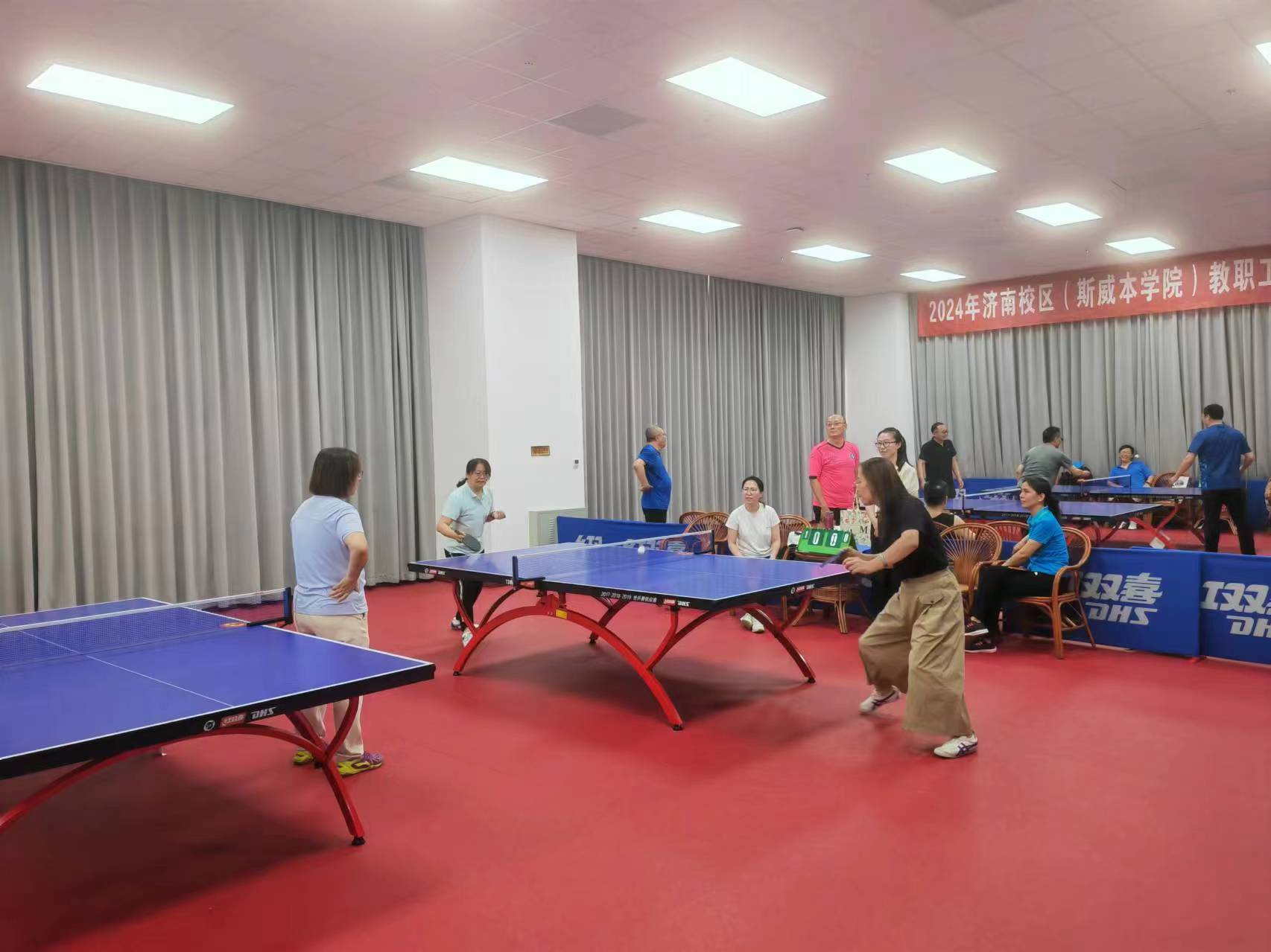 6月4日,歷時5天的濟南校區2024年教職工乒乓球比賽在藝體樓精彩落幕。來自校區各工會小組的5支代表隊50余名運動員參加了比賽。經過激烈角逐,教師三隊勇奪冠軍,管理一隊、教師一隊分獲亞、季軍。