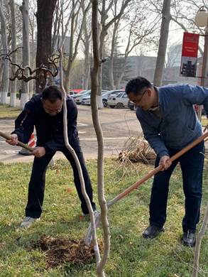 為深入貫徹落實(shí)習(xí)近平總書(shū)記“綠水青山就是金山銀山”的綠色發(fā)展理念,切實(shí)加強(qiáng)生態(tài)環(huán)境保護(hù)建設(shè),提升黨員群眾保護(hù)環(huán)境的意識(shí),增強(qiáng)支部凝聚力。3月12日,在我國(guó)第43個(gè)植樹(shù)節(jié)來(lái)臨之際,后勤黨支部組織開(kāi)展了“植樹(shù)節(jié)”主題黨日活動(dòng), 校區(qū)黨工委副書(shū)記賈長(zhǎng)響參加本次活動(dòng)。