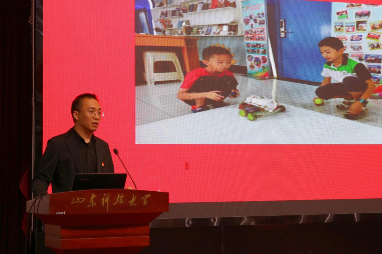 董皓以《我和8位世界冠軍的故事》為題,分享了科技教育與學(xué)生成長的深層關(guān)聯(lián)。他指出,素養(yǎng)的提升帶給學(xué)生更強(qiáng)的學(xué)習(xí)力。他強(qiáng)調(diào),“用手思考、動手實(shí)踐”是關(guān)鍵。自2008年開展機(jī)器人課程以來,他倡導(dǎo)“少講技能、多布置任務(wù)”,通過“老帶新”實(shí)踐模式,成功研發(fā)《面向未來》問題導(dǎo)向型科技課程群。他表示,希望大學(xué)生們以“功成不必在我”的境界和“成功一定有我”的擔(dān)當(dāng),讓科技之光照亮教育之美,以青春之力鑄就民族之魂。
