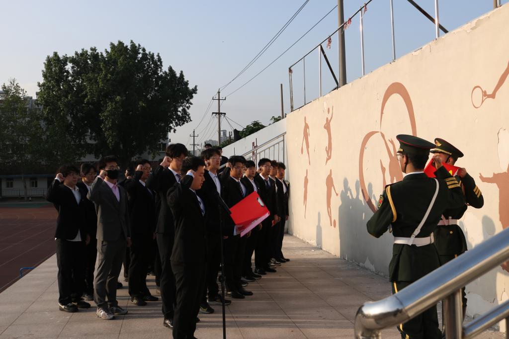 朝陽(yáng)初升之際,國(guó)旗護(hù)衛(wèi)隊(duì)以鏗鏘步伐護(hù)衛(wèi)國(guó)旗入場(chǎng)。伴隨莊嚴(yán)的《義勇軍進(jìn)行曲》響徹校園,全體師生面向冉冉升起的五星紅旗行注目禮,通過(guò)神圣的升旗儀式傳承五四精神,彰顯新時(shí)代青年賡續(xù)紅色血脈的使命擔(dān)當(dāng)。