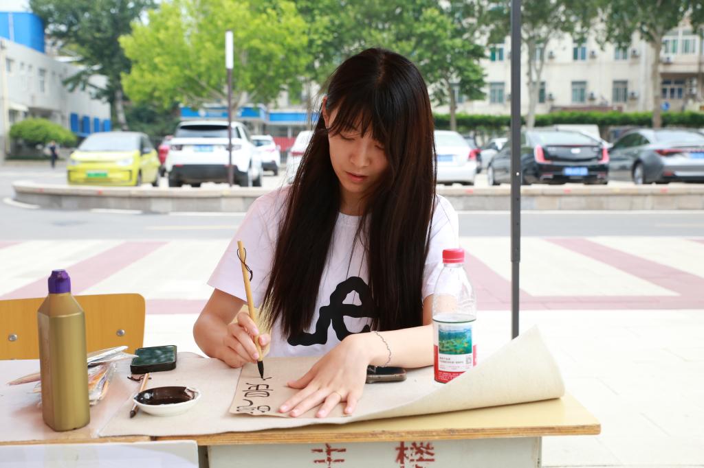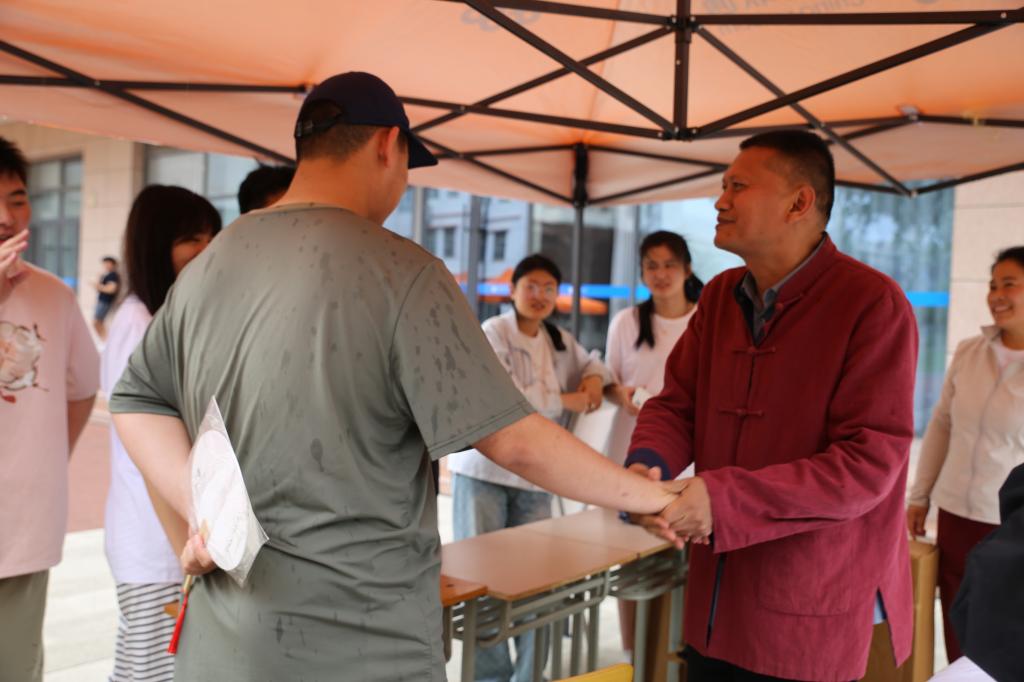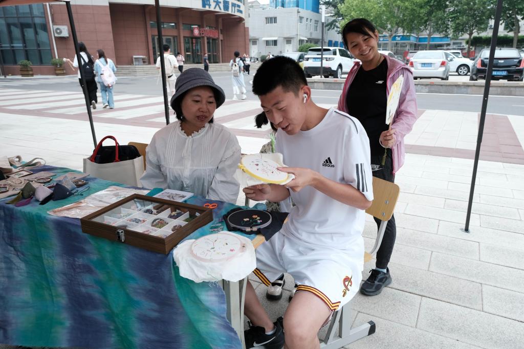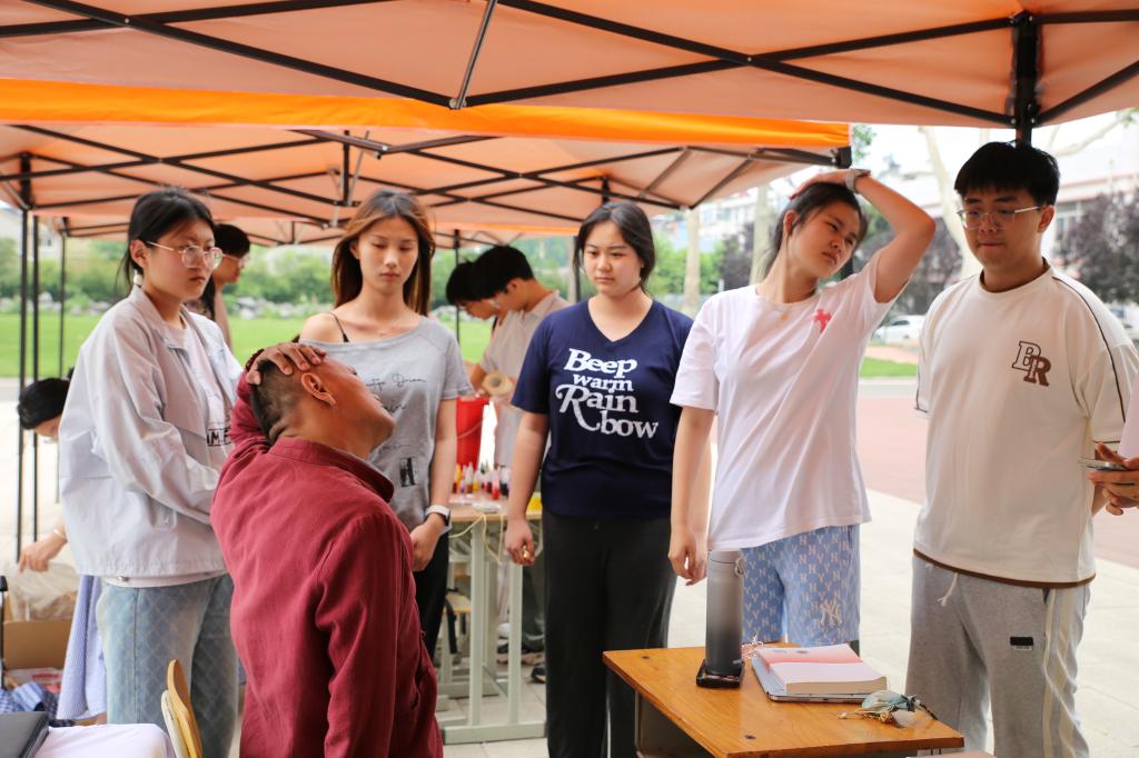 活動現場,傳統體育項目區盡顯蓬勃朝氣,同學們執箭投壺,躬身行禮間品味古人宴飲雅趣;手握推桿,追逐奔跑中感受滾鐵環的速度激情;揮動球桿,擊丸入洞時探尋古代球類運動的千年奧秘。手工技藝體驗區更是人氣高漲,成為優秀傳統文化傳承的活力課堂。漆扇、書法、扎染、香囊制作、繪制風箏、植物拓染等活動精彩紛呈。魯繡、正骨推拿技藝傳承人走進校園,為師生帶來一場非遺文化的深度體驗。魯繡大師以精湛技藝,生動展現“齊針細密、配色典雅”的藝術神韻;正骨推拿技藝傳承人以現場實操,深入淺出地普及中醫養生知識,展示傳統推拿技法。師生們踴躍參與其中,在親身實踐中感受傳統工藝的傳承之美,感悟中華優秀傳統文化的深厚魅力。