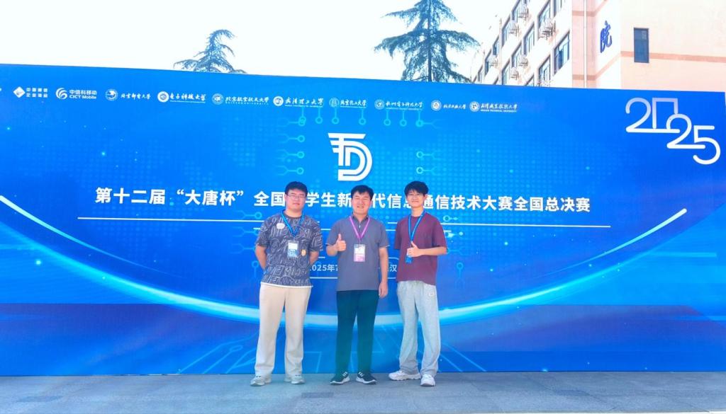 7月14日,第十二屆“大唐杯”全國大學生新一代信息通信技術大賽在武漢圓滿落幕。校區通信工程專業學生張宇輝、王森和董圓圓、張宸菘組成的兩支參賽隊伍,歷經省賽、國賽線上賽和線下實踐賽的多輪激烈角逐,憑借扎實的專業功底、出色的實踐能力和優秀的團隊協作精神,最終斬獲全國一等獎和三等獎。這是繼2023年后,校區學子再次問鼎該項賽事全國一等獎。