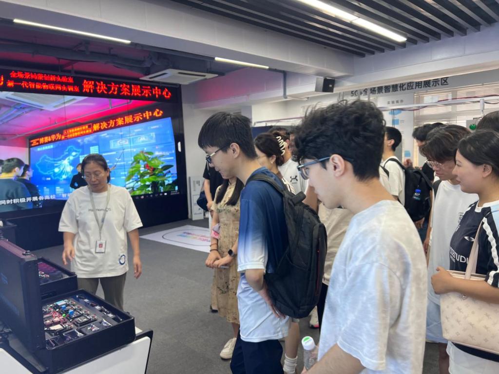 鴻蒙生態實踐成為亮點。學生近距離觀摩了鴻蒙分布式操作系統的開發平臺,通過智能門鎖控制、多設備協同等場景,直觀感受鴻蒙“一次開發、多端部署”的技術特性。技術人員演示了基于PCL平臺的手機-平板-車機任務遷移流程,引發學生對輕量級開發框架(如FastAPI+Vue)與鴻蒙生態融合可能性的深度思考。