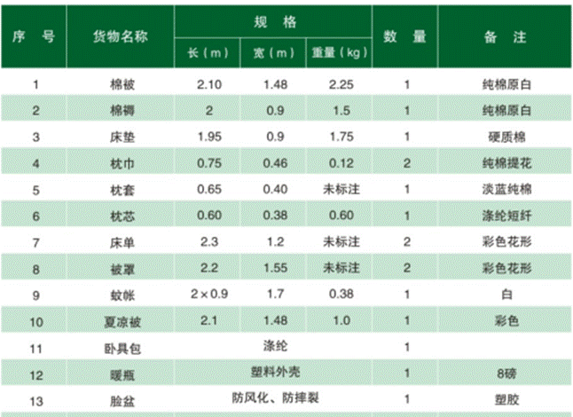 1、公寓用品:每生實際應收545元(暫收570元,應退25元),為宿舍床上用品等款,學校統一招標采購,學生可自愿選擇購買,按成本收取。包括以下內容: