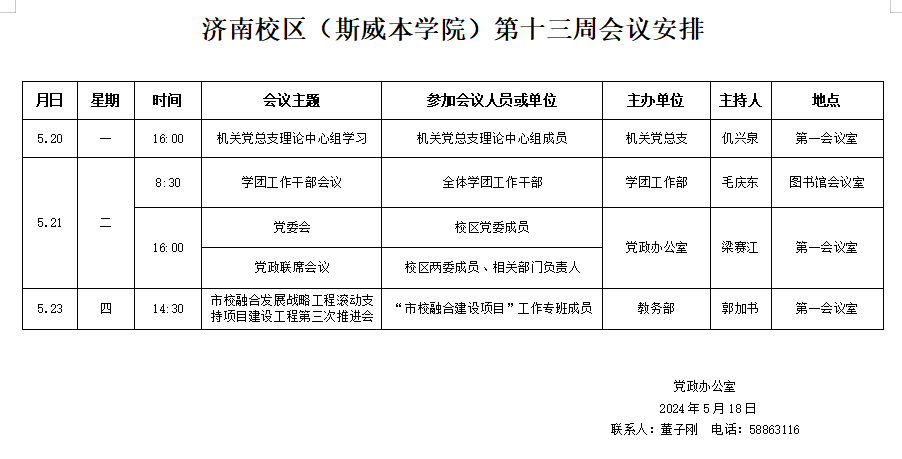 濟南校區(qū)(斯威本學(xué)院)第十三周會議安排