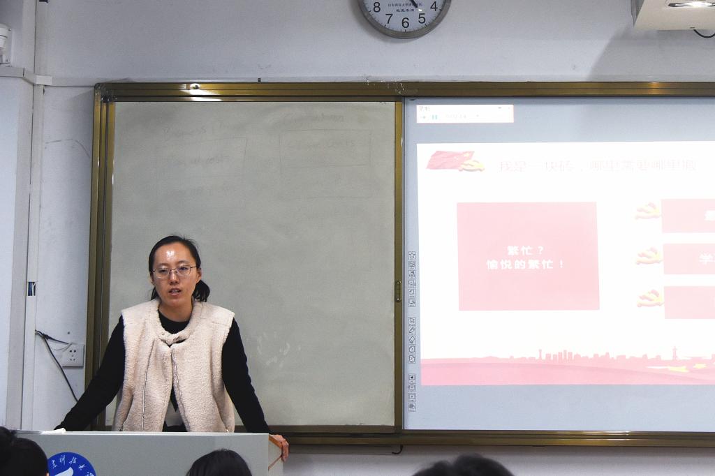 11月12日,財經系學生黨支部書記齊斯文于下午四點在1-506為學生黨支部全體學生黨員以《共產黨人的立身之本》為題開展支部書記講黨課活動。