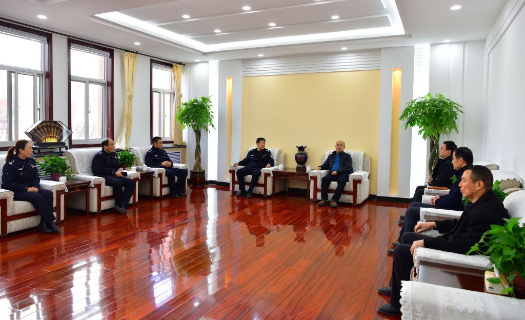 郭加書對堤口路派出所一直以來對校區工作的支持表示感謝,向王旭軍一行簡要介紹了學校的發展歷史與現狀、濟南校區的功能定位與辦學特色,同時介紹了春季學期開學前后相關工作開展情況。