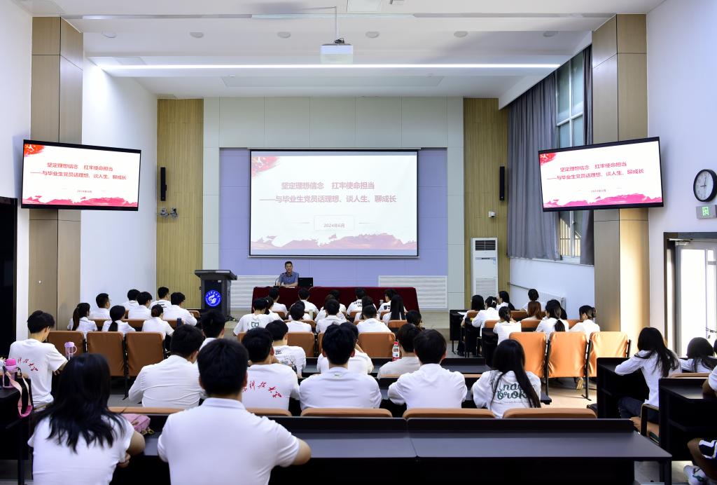 為進一步推動黨紀學(xué)習(xí)教育走深走實,加強畢業(yè)生黨員教育,激勵廣大畢業(yè)生黨員在新征程上堅守初心、勇?lián)姑⒃賱?chuàng)佳績,6月18日,濟南校區(qū)黨委常務(wù)副書記梁賽江為2024屆畢業(yè)生黨員講授題為“堅定理想信念 扛牢使命擔當”的專題黨課。